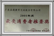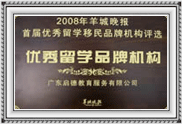 2008年/以读者最高投票票数荣获广州日报主办的“欧美澳留学品牌机构推介”奖