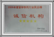 厦门分公司荣获由厦门市诚信促进会和厦门晚报联合主办“诚信留学机构”评选活动的“诚信留学机构”称号