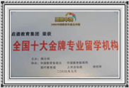 荣获由腾讯网主办的2008中国教育年度总评榜的“十大金牌专业留学机构”称号