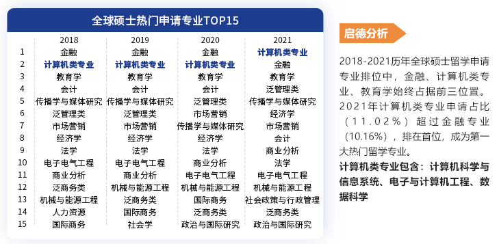 了解更多 >启德教育重磅推出《研究生留学十大专业——计算机》,紧跟数字产业热潮,助力成功留学。本次报告以海外计算机留学为主线,从概述、申请、就业等方面梳理了全球计算机类专业研究范畴的异同、揭秘了海外名校录取的4大标化成绩分布、总结了热门院校重点细分专业的申请攻略、汇总了各地计算机类专业就业机遇以及薪资水平。
