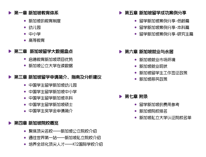 了解更多 >启德教育结合多年的统计数据以及内部信息,全新发布《新加坡留学报告》,旨在能够充分帮助留学新加坡的家长、同学们了解新加坡教育体制,以及未来留学后的就业升学等真实信息。本次报告共分为7个部分,涵盖从教育特色、留学大数据分享,以及就业情况,详实的一手信息,相信能为家长和同学们提供实用的参考价值。