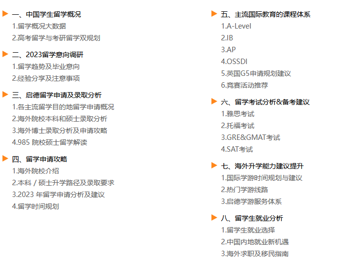 了解更多 >2023年6月启德教育第四次发布《中国学生留学白皮书-本科篇》,通过分析留学目的地的官方数据、启德多年的客户服务数据与调研数据,系统梳理全球本科留学的多元路径、申请攻略与海内外就业指南,以期为意向本科留学的家庭提供规划与申请蓝本,同时也希望能够帮助中国学生推开高考后全球升学的大门。