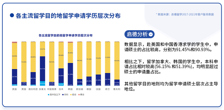 启德教育发布《中国留学市场2021年盘点与2022年展望》,以启德自有客户数据为基础,综合整理美、英、澳、加、亚洲、欧洲等中国学生主要留学目的地的各类官方数据, 梳理出2021年中国留学市场概貌、最新招生政策,以及各主流留学目的地发生的可能对中国留学生产生影响的大事件, 并对2022年中国留学市场的发展变化进行了展望与预测。