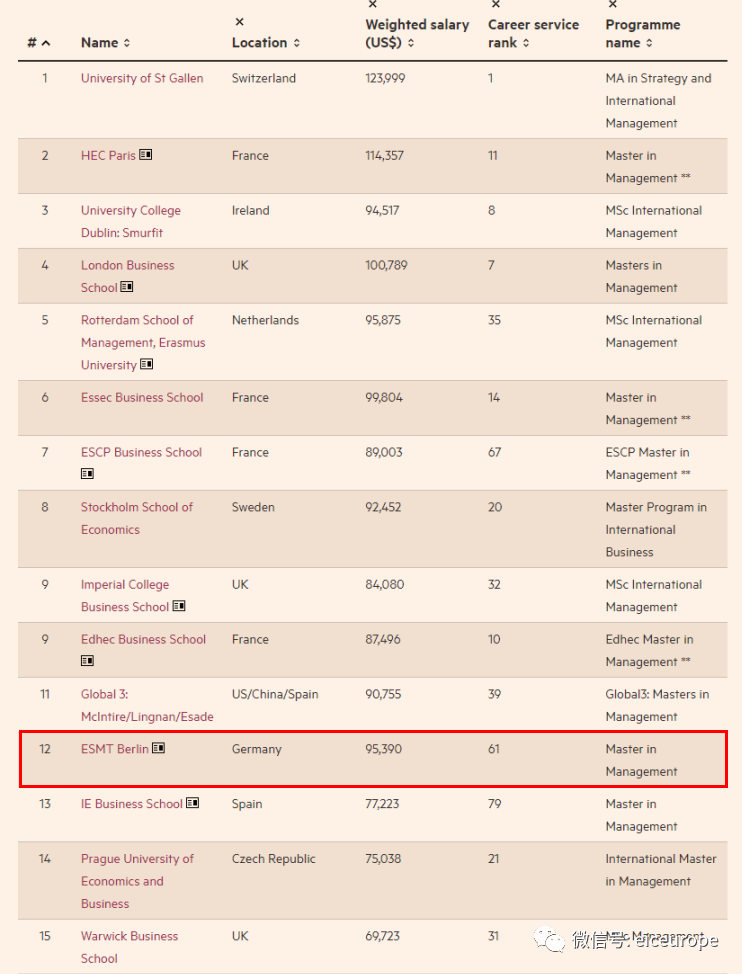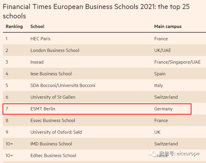 在2021年《金融时报》欧洲商学院排名中位列第7,德国第1。