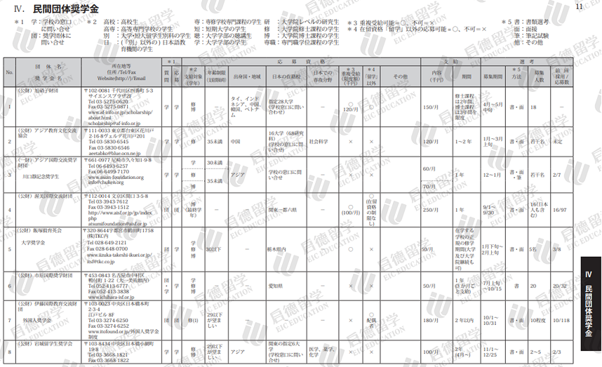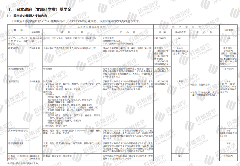 申请对象:大部分研究生和博士,少量的研究生、短期大学和专门学校学生