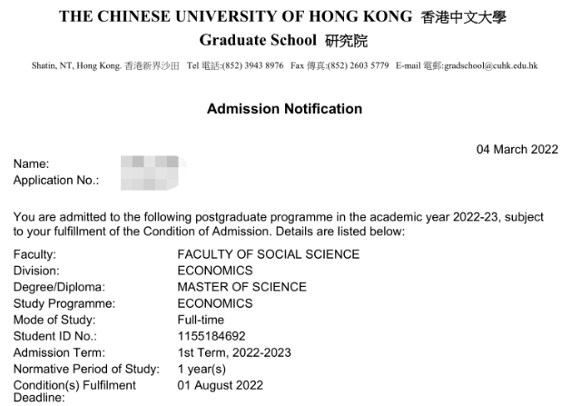 今天和大家介绍一位我的学生YF。年末年初紧急递申,因为临近申请截止日期,YF、YF妈妈与我们全力配合,在短时之内完成雅思备考、出分、材料&文书准备、递申的动作。多线并行之后,努力终于有了回报,YF在今年3月相继获得香港中文大学和南洋理工大学商科专业录取。