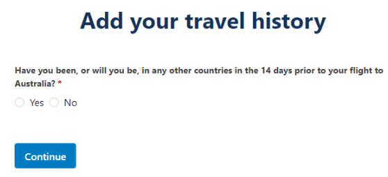 填好护照信息后点击确认并继续,接下来会要求你提供旅行历史的信息。