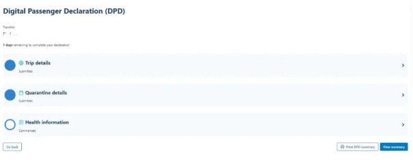 2. 出发前记得再次确认资料是否带全, 在登机前和抵达后你会被要求出示 DPD。记得从摘要中打印一份 DPD 副本,或者在移动设备上提供该副本。