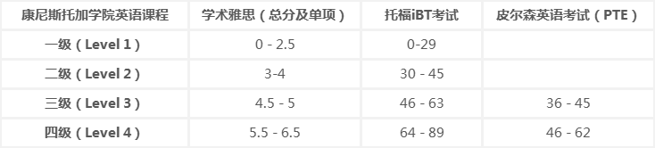 学术英语语言课程(EAS)与各类英语考试成绩对照表: