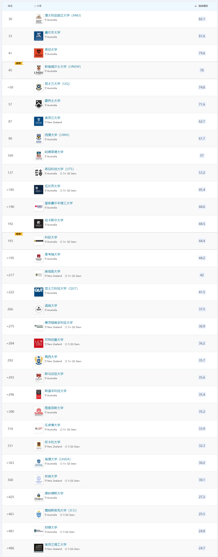 目前国家教育部认可的澳洲大学名单共有39所,均属于综合性大学。在知名的QS排名中,这些大学有 7所 进入TOP100,分别是 澳国立大学、墨尔本大学、悉尼大学、悉尼新南威尔士大学、昆士兰大学、蒙纳士大学和西澳大学;另外,还有14所位列TOP200,分别是阿德莱德大学、悉尼科技大学、伍伦贡大学、皇家墨尔本理工大学、纽卡斯尔大学、科廷大学和麦考瑞大学。 向下滑动查看 这仅仅是综合排名,澳洲也有世界领先的专业排名。澳洲大学在商务管理、会计金融、艺术、传媒、教育、体育等等常年位于前30名,理工、医学、均十分的强势,众多学科领域都有一席之地。 除此之外,澳大利亚的留学模式可谓是即友好又人性,是众多留学生提升学历背景的宝地。 所谓择优制就是根据学生的GPA,语言,和背景综合评判是否录取,大部分热门留学地都采取这样的模式招生。而澳洲一般会先规定分数线,达到线即可录取,录满即止。这个政策的受益者莫过于学术背景一般,申请某些热门国家又卷不过尖子生,又想去排名好的大学,因此澳洲的不择优制度给了很多成绩普通的同学一个橄榄枝,更大机会进入QS排名TOP50的大学深造。 澳大利亚有多所大学认可国内的高考成绩,应届高考生可凭高考成绩和雅思托福等标准化语言考试成绩申请入读澳大利亚大学大一,用3-4年的时间即可完成本科学习。入学方式一般为:预科+本科/国际大一+本科/高考直录以及职业技术课程+本科为主要申请方式,灵活的申请方式为不同学历背景的学生提供了通往优秀大学本科教育的途径。同时很多学校也设立奖学金和学费减免政策,由此看来,澳洲可以说是人性化留学路上的优秀标兵~ 澳洲可以说是专科生逆袭的最佳选择之一。专科生、本科无学位学生赴澳提升学历一直被很多人推崇,在这里通过硕士预科即可进入硕士正课,拿到硕士学位。另外值得一提的是,澳洲专升硕也很人性化: 1、可选择的方向广,商科,IT计算机类、工程类、传媒、教育等均可供选择,很多知名学府均开设专升硕课程,给学生施展拳脚的机会; 2、赴澳专升硕门槛相当灵活。澳洲一些大学对于专业背景要求宽松,因为考虑到国内大专学历也比较复杂,所以澳洲针对不同的专科学习经历,搭配不同时长的工作经验弥补。 想要留学+就业一手抓,澳洲是个不错的选择。澳大利亚允许留学生打工,不同学业阶段留学生均可打工,不限打工时长。一般最低薪资为21.38澳币/小时,或者812澳币/周。 同时,澳洲也会给予毕业生三年工作签证(485临时工作签证 Post-Study Work Stream)简称PSW,是一种短期签证,适用于在澳洲完成两年学业但未能达到移民分数要求的毕业生。PSW签证的目的是为了让学生们有足够的时间来完善自己各方面的技能,以满足移民的要求。持有澳洲毕业生工作签证PSW毕业生可以继续留在澳洲找工作、学习、旅游、或者完成职业年(professional year)。非常适合想要长期留在澳洲居住和体验的同学。 而澳洲本地就业市场也在增速中,联邦政府技能预测机构国家技能委员会又对未来澳洲人才缺口进行了预测,结果表明到2026年底,澳大利亚劳动力将增加9%以上,《澳洲金融评论报》报道称澳大利亚需要在未来四年内增加120万从业岗位。随着政策调整、市场高速发展,不少留学后选择拿到澳洲PR再回国发展,海内外的实战经验是留学生特有的职场竞争力。