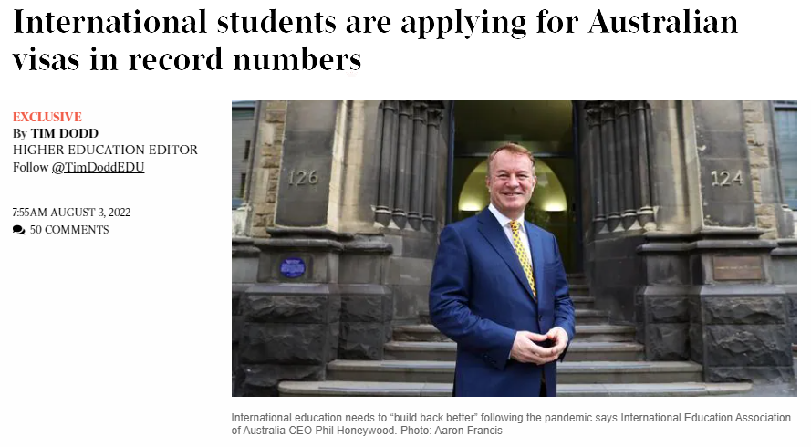 【导读】根据The Australian近日报道,赴澳留学申请签证的人数在6月创下新高!内政部表示6月共计有42,700份学生签证申请,是十年来单月收到最大数量的境外申请。