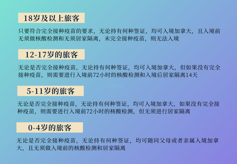 01 国际学生入境政策宽松 自疫情以来,加拿大政府逐步放宽入境限制,大部分院校逐步恢复线下授课,国际学生出入加拿大更加便利。目前官方要求国际学生只需满足以下要求,并在入境前14天以前完成疫苗接种即可,中国的科兴和国药疫苗均被加拿大政府所承认。 2022年6月29日联邦卫生部发布最新公告,将维持现时的边境政策至少到9月30日,官方最新规定针对TRV(包括旅游签、学签、工签)的入境政策如下: 而针对有加拿大国籍或者永久居留(PR)身份的旅客,无论是否完全接种疫苗都可以入境加拿大。但如果没有完全接种疫苗,则需要进行入境前72小时核酸检测和在入境后进行居家隔离14天。