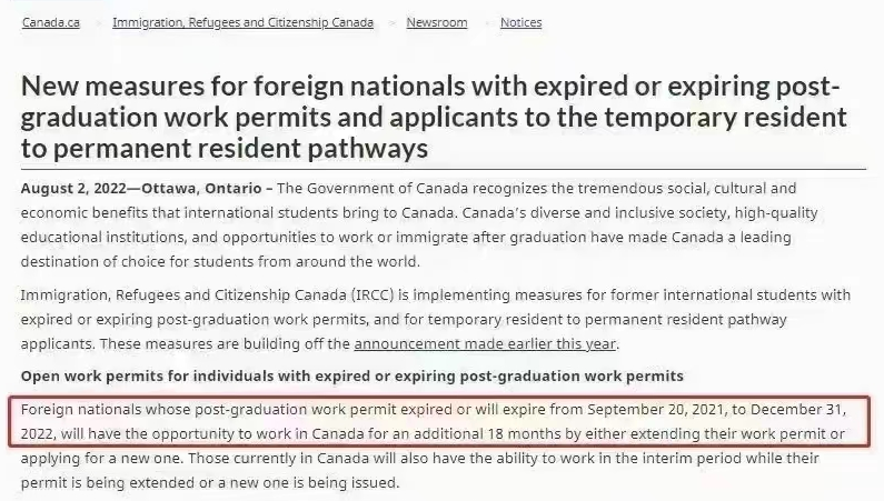03 放宽“毕业后工签制度”,工签闭眼拿 为了广纳贤士,加拿大政府的福利可以说是五花八门。 拿近日的利好消息来说,加拿大移民部宣布到今年8月31日之前临时对远程学习的学生开放PGWP工签的申请资格。所以居家网课的同学也有机会在加拿大就业、申请永久居民!从DLI中的院校毕业后学生们有180天的时间申请PGWP,如果符合条件只需相关文件证明自己已完成学业,即可申请。之后再根据反馈提交其他申请文件。拿到PGWP工签可以三年内继续在加拿大境内生活和就业。 来源:https://www.vandiary.com/ 另外,8月初加拿大移民局公布了18个月毕业工签的新政:允许毕业工签在2021.9.20-2022.12.31内过期和即将到期的学生,额外获得18个月开放工签。 现在赴加留学不仅处于一个政策利好的趋势下,更值得注意的是加拿大就业率也处于增长状态,对国际学生来说是赴加就业发展的好时机。从2021年5月的59.4%增至今年2月61.4%,空缺职位也从2021年增加到70多万,可见市场对于人才的需求。 劳动力的空缺也将会进一步影响加拿大移民政策,加拿大独立企业联合会(CFIB)就表示应当加大引进新移民的力度,以改善劳动力空缺的现状。这也为留学生们提供了更稳定的就业环境。