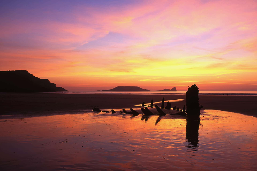 Rhossili beach在威尔士,多年来被英国评为威尔士第一海滩,英国最美海滩之一,位于威尔士斯旺西附近。斯旺西绝对是威尔士旅游的绝佳选择!从斯旺西到Rhossili Bay很近,大概十五分钟车程就能到。