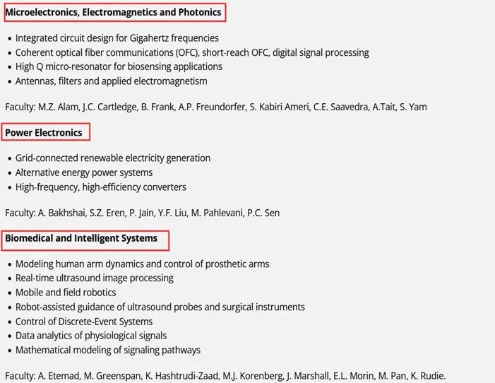 具体研究方向如下: Bioelectrical Engineering; Telecommunications and Signal Processing; Systems and Control; Integrated Circuits and Systems; Nano-Electronic Devices and Materials; Photonic Systems; Computational Electromagnetics; Power Engineering; Intelligent Systems; 具体录取的学术要求如下: