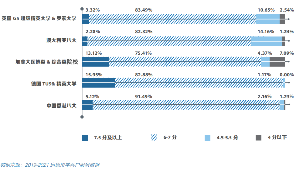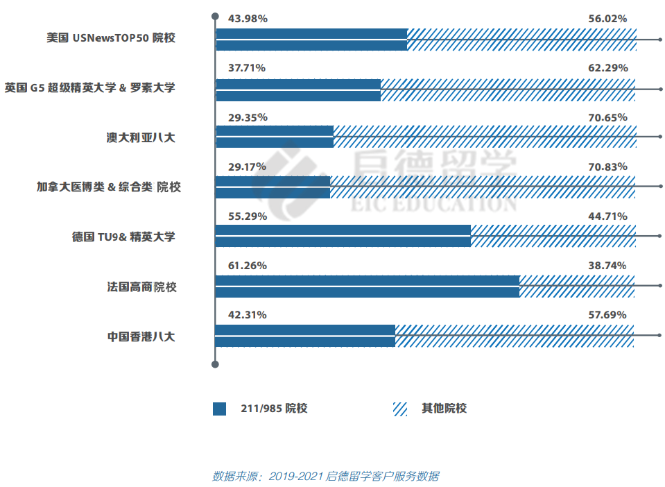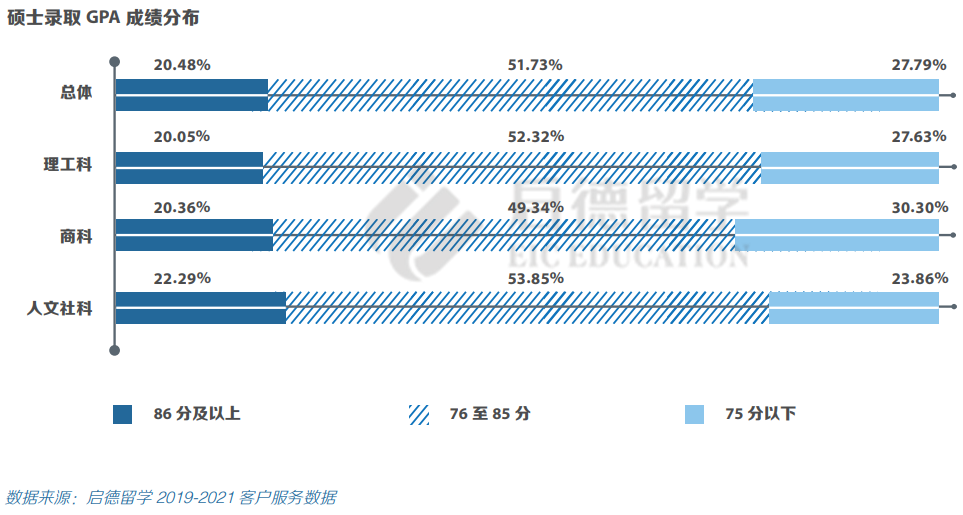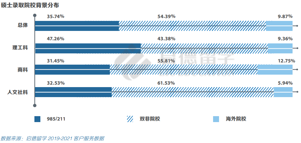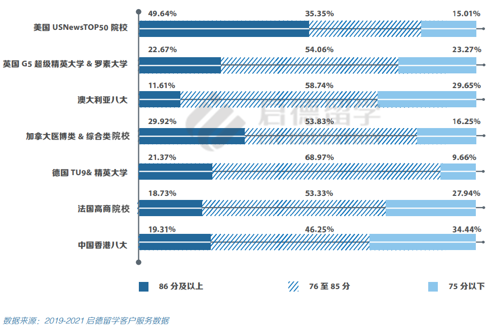 双非背景会影响我读研申请好学校吗?别丧气!启德留学2019-2021年客户服务数据显示,硕士录取学生中来自于双非院校的学生占比最多,但是理工科学生中来自985/211院校的占比超过了双非院校。各国热门学校硕士录取的院校背景是怎样呢?法国高商院校中来自211/985院校的占比最高,为61.26%,其次为德国TU9&精英大学(55.29%),美国USNewsTOP50院校(43.98%)。GPA要多高申请才有戏?启德留学2019-2021年客户服务数据显示,硕士录取学生中七成以上 GPA 成绩“76分及以上”,其中人文社科学生“76分及以上”占比最高。一起再来看看各国热门院校硕士录取的GPA成绩:GPA “86分及以上”美国USNewsTOP50院校占比最高,为49.64%,“76至85分”德国TU9&精英大学院校占比最高,为68.97%。整体硕士录取雅思成绩分布:启德留学2019-2021年客户服务数据显示,硕士录取学生中八成以上雅思成绩“6分及以上”,其中人文社科学生“6分及以上”占比最高。