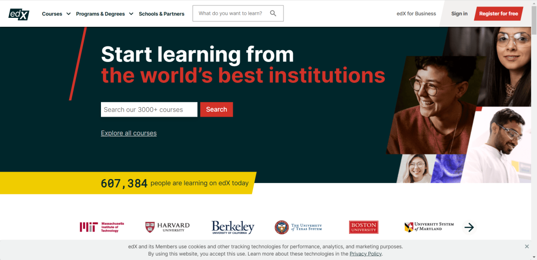 4. edX 这是一个由麻省理工和哈佛大学联合创办的开放式在线课堂平台。 网站上有多所名校提供的多个专业的基础免费线上课程,只有在想要进阶学习的时候才需要另行付费。 这个网站上有些课程是中文版的,十分推荐他的计算机科学和数据科学等热门课程。 除了有官方认证的课程以外,在线学习时达到及格的学生还可以获得证书哦!