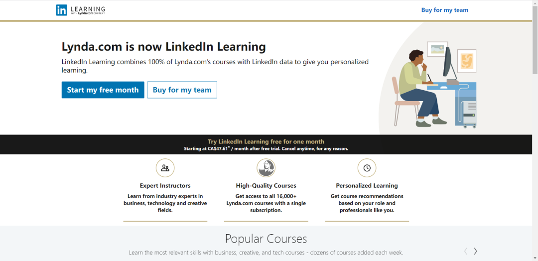 3. Lynda Lynda是Linkedin旗下的教育平台,上面也包含了非常多的不同的课程,其中包括了编程,工程,平面设计,以及商科相关的内容,培训资源丰富。 虽然这个网站也需要付费,但是课程结束的时候也是有证书认证的的哦!
