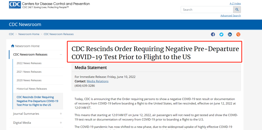 【导读】已生效!6月12日零时起,赴美不再要求新冠阴性证明!