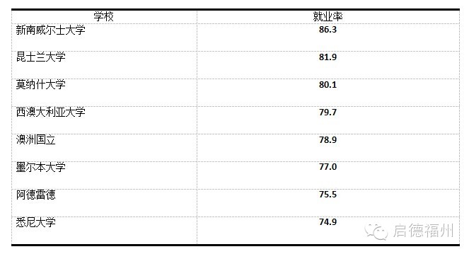 数据是最有力的证明。根据澳洲官方统计数据显示,澳洲八大名校的毕业生就业率都是顶呱呱! 2014年UNSW本科毕业生就业率高达85.40%, 硕士毕业生就业率高达92.80%,位居八大名校之首。而针对没有就业的毕业生调查显示,有很大一部分毕业生是已经拿到工作offer,但是选择继续深造而放弃就业机会的。