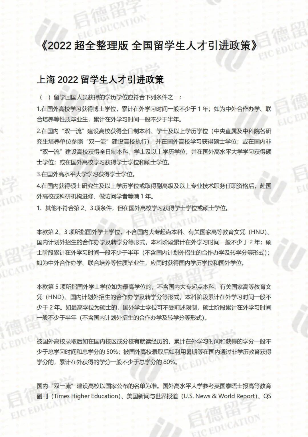 不过值得一提的是,近日以上海为首,开始呈现对留学归国人员放宽落户要求的趋势,具体为: