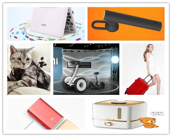 平衡车、运动相机、快易典、行李箱、蓝牙耳机、小米充电宝、小熊加湿器、U盘、雨伞等。