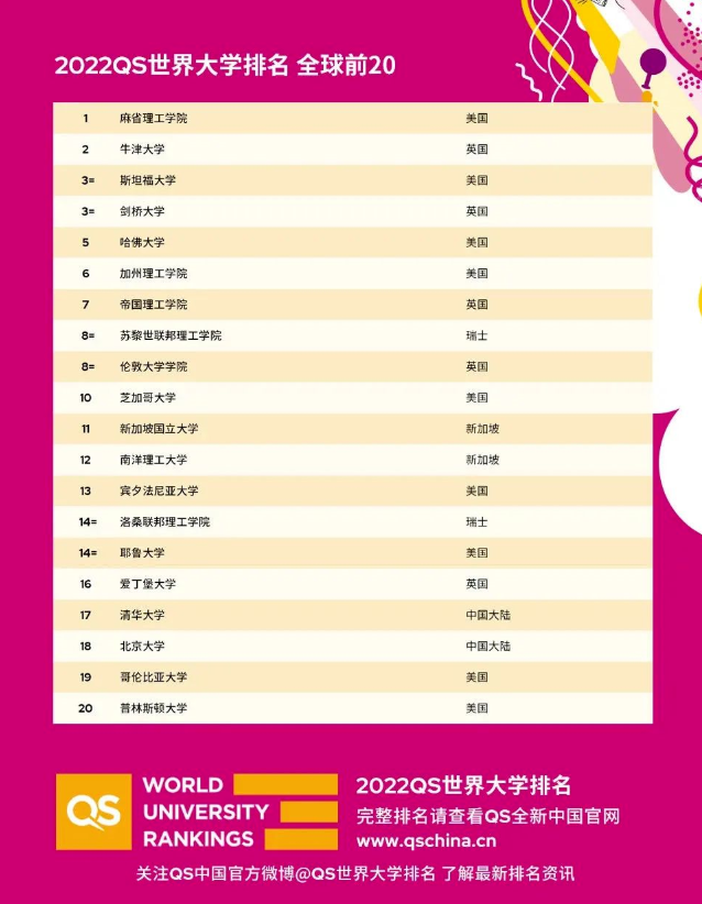 西班牙高等学术研究委员会(CSIC)发布了2022年最新一版的WRWU世界大学排名,在新加坡高校方面,新加坡的两所大学表现优异,新加坡国立大学排名52,南洋理工大学排名90。这傲人的成绩足以证明这两所大学在教育界的地位。如果给你一次机会去新加坡TOP级大学学习的机会,可千万不要错过。