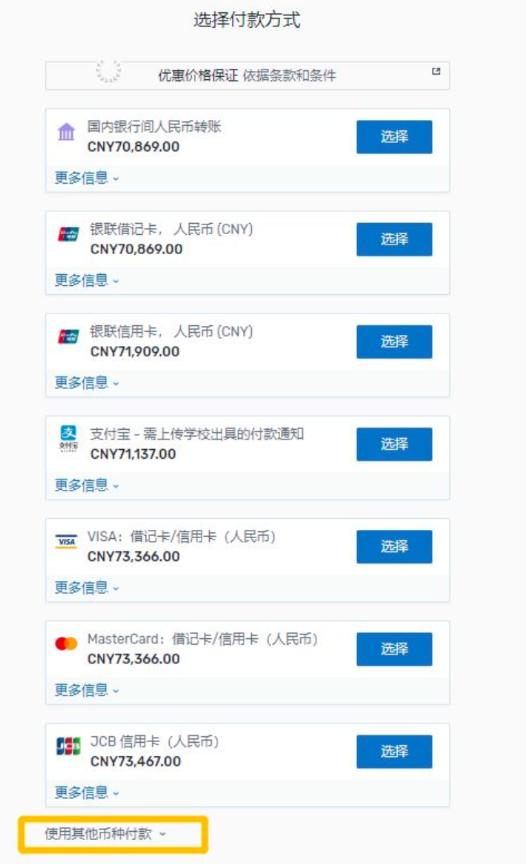 信用卡支付方式有些学校会有服务费需要看清楚再支付。如果是国际汇款通常需要3-4个工作日才能到账,需要计算好到账日期以免影响选课。