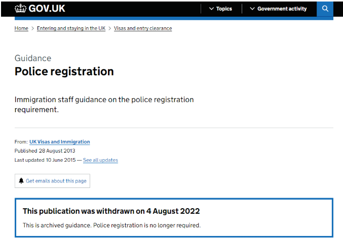 对入境英国的中国籍留学生和新移民来说,一个非常繁琐的事情就是到警察局注册。英国要求所有超过16岁的长期签证持有者(计划在英居住超过6个月)需要在到达英国后7天内去当地警察局注册,在申请并拿到注册信之后,每次签证变动和婚姻、地址变动也都需要去警察局登记。不过这项麻烦的工作即将被取消!根据英国政府最新规定,2022年8月4日起不再需要警局注册。
