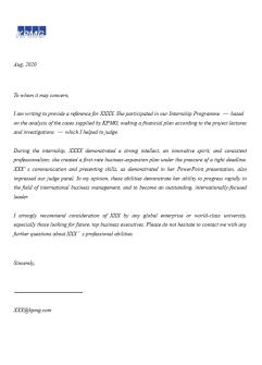 项目最大的优势就是邀请了四大之一的毕马威高管作为导师,指导学员们学习如何高效整理、分析财务数据,并利用有效的分析结果帮助企业自我定位。同时在项目结束后,完成全部项目内容的学员可获得四大高管/职业经理人出具的推荐信,支持背景调查。