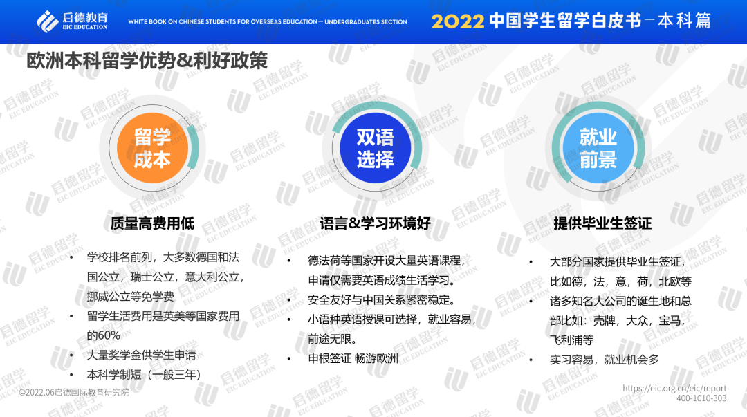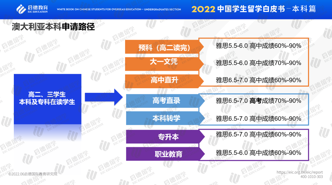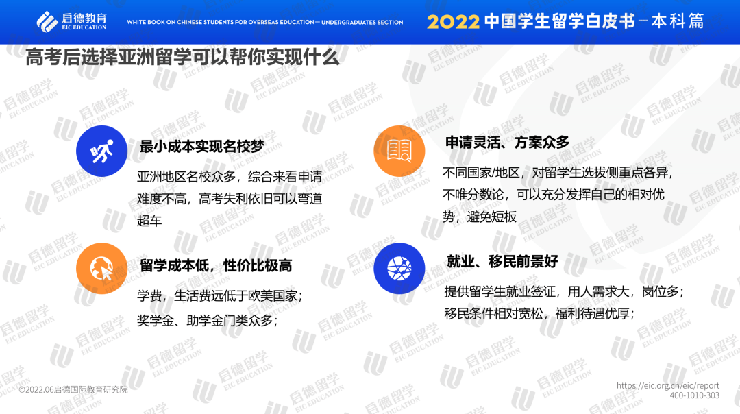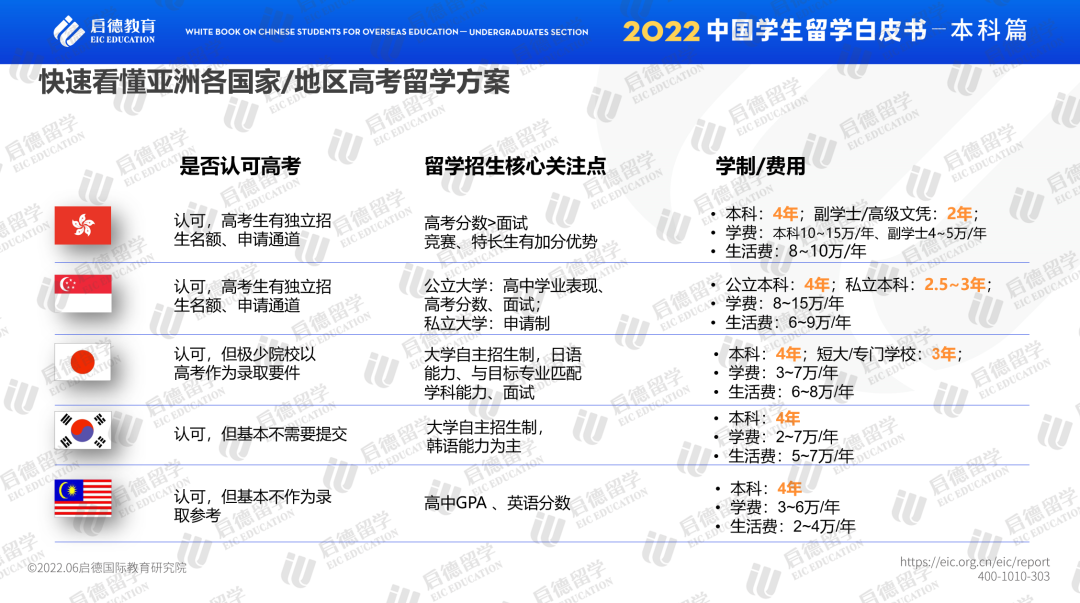 教育部统计数据显示,2022年全国高考报名人数1193万,比去年增加115万。据人口模型预测,高考适龄人口将在2029年达到峰值,近十年间高考人数仍将保持上涨态势。与此同时,本科录取比率正逐年降低,与2018年(53.4%)相比,2021年(44.5%)的本科录取比率下降了近9个百分点。在这样的压力之下,本科留学成为不少中国家庭为子女规划高等教育的重要考虑方向。2022年6月25日,在全国高考成绩陆续亮分之际,启德教育第三次发布《中国学生留学白皮书-本科篇》,围绕高考后升学与全球志愿填报,结合留学目的地的官方数据与启德多年客户服务数据,梳理出系统化的本科留学申请攻略与海内外就业移民指南。