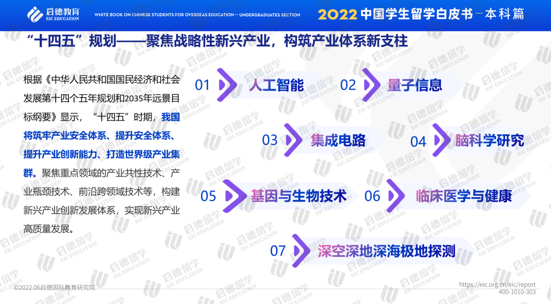 如何从大学本科阶段开始进行职业规划?以十四五规划制定的重点研发方向为参考,人工智能、量子信息、集成电路、脑科学研究、基因和生物技术、临床医学、深空深地深海极地探测,代表了三大领域的产业与就业方向:第一,和集成电路、人工智能以及量子信息技术联系起来的数字化领域;第二,基因技术和临床医学领域;第三,针对深空深地深海的探测,即是对未来新能源和新材料的探索。