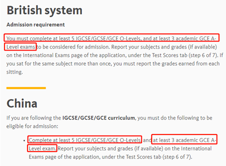 也就是说,无论是在英国还是国内就读的 A-Level 课程体系,UC 的学校要求学生完成至少 5 门 (I)GCSE 和 3 门 A-Level 考试。