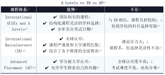 如果你是不偏科的全能选手或是喜欢挑战自我的学生,那么 IB 严格的课程体系或许会更加适合你。而如果你是有一些偏科又想多国混申的学生,A-Level 的教学和考试设置可能对你来说更加友好。如果你是体制内学校的学生,学校不提供国际课程,那么你可以自己进行 AP 课程的选修和考试,相信同样可以帮你佐证你的学术背景和能力。