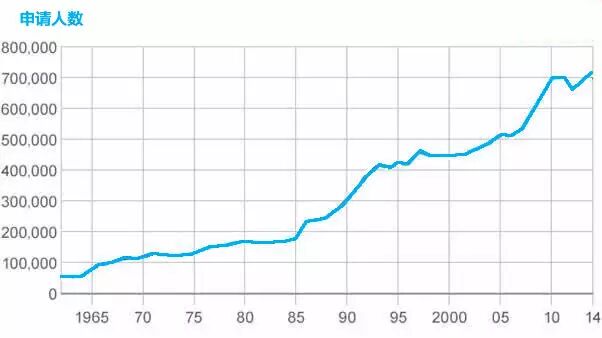 根据UCAS 2015年1月15日公布的数据显示,2015年秋季入学的申请人数超过592,290人.前所未有的历史性数字。并且这个数字还在不断增加,历年申请人数变化如下图所示↓↓